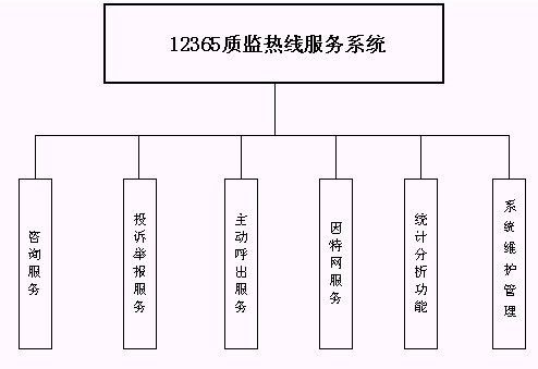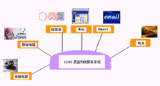 人民群眾利用電話、傳真、手機(jī)、電子郵件、因特網(wǎng)、短消息等撥打國家質(zhì)量技術(shù)監(jiān)督局規(guī)定的統(tǒng)一特服號碼(12365)進(jìn)入12365質(zhì)監(jiān)熱線服務(wù)系統(tǒng),本系統(tǒng)依托質(zhì)量技術(shù)監(jiān)督局各類業(yè)務(wù)技術(shù)支持系統(tǒng)和網(wǎng)絡(luò)系統(tǒng),通過人工受理或自動語音服務(wù)等方式全天24小時(shí)不間斷地為客戶提供各種服務(wù)。