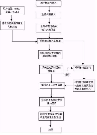 投訴舉報(bào)的受理可以自動完成,提示用戶輸入投訴的部門和工作人員的代號。也可以人工完成,直接將投訴對象告訴話務(wù)員。