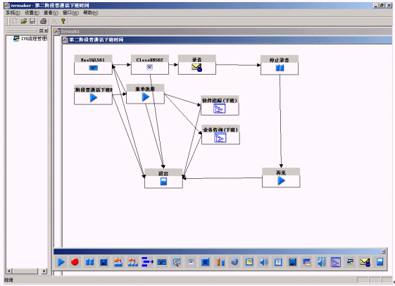 系統(tǒng)提供圖形化的語音流程生成環(huán)境,以方便用戶對語音流層進(jìn)行定制。流程生成器是一套可視化的流程設(shè)計工具,通過拖拉圖標(biāo)控件、鼠標(biāo)連線即實(shí)現(xiàn)呼叫中心CTI流程的制作,同時,通過運(yùn)行時鏈接動態(tài)連接庫(DLL),實(shí)現(xiàn)對業(yè)務(wù)數(shù)據(jù)庫的訪問;通過運(yùn)行時鏈接用戶DLL,最靈活地與用戶應(yīng)用系統(tǒng)結(jié)合;支持多種業(yè)務(wù)集成和動態(tài)流程控制,方便用戶拓展業(yè)務(wù);采用事件驅(qū)動機(jī)制、開放的結(jié)構(gòu),滿足各種語音系統(tǒng)的需要;支持不限個數(shù)、級數(shù)的IVR結(jié)構(gòu),可滿足用戶非常復(fù)雜的需求。
