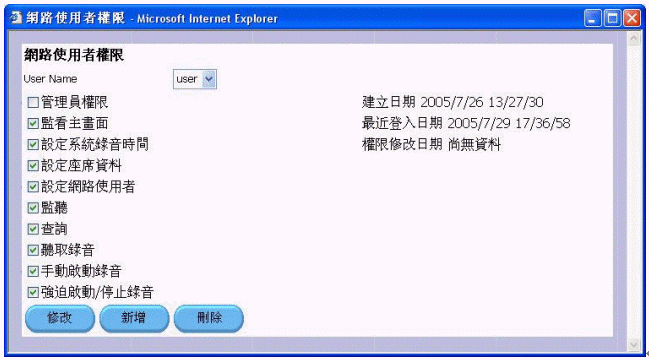 - 使用者操作權(quán)限可由上一級使用者設(shè)定,登入、注銷皆有密碼管制,且操作內(nèi)容皆有系統(tǒng)紀錄。