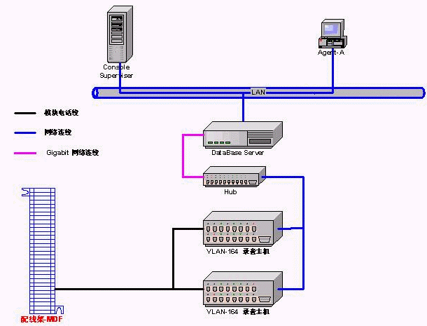VLAN Lan-based數(shù)字錄音系統(tǒng)采用全網(wǎng)絡(luò)架構(gòu),突破了原有使用錄音卡及工控機方式的局限性與高成本。使您的錄音系統(tǒng)不再需要工控機,安裝升級擴展完全不受工控機擴展槽及硬件兼容性的限制。VLAN錄音系統(tǒng)推薦采用PC Server作為錄音存儲服務(wù)器,通過網(wǎng)絡(luò)協(xié)議與VLAN硬件相連。