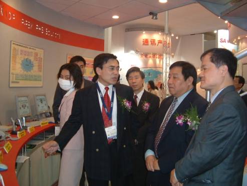 中國郵電器材集團公司總裁楊忠良和上海市通信管理局局長張健作介紹。
