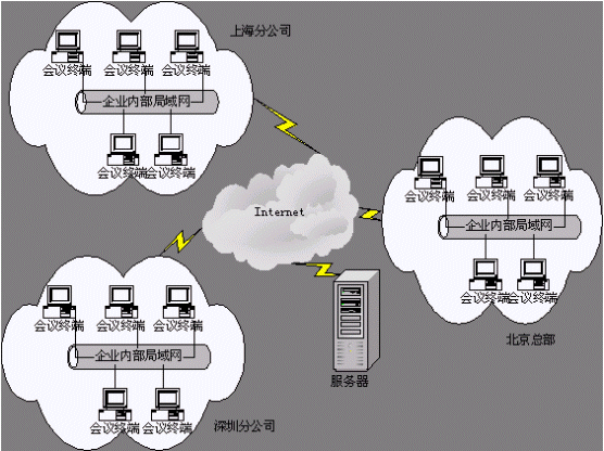 3、 靈活性,如某一員工出差,只要他的隨身PC能上網(wǎng)就能與主會場連接實現(xiàn)互動會議。