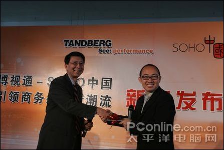 11月20日,地點北京,作為全球領(lǐng)先的網(wǎng)真、高清視頻會議和移動視頻產(chǎn)品和服務(wù)供應(yīng)商,騰博(TANDBERG)視通公司向中國成功商業(yè)精英的代表、SOHO 中國有限公司董事會主席潘石屹贈送騰博(TANDBERG)視通 1700MXP 高清視頻通信產(chǎn)品。此舉標志著代表全球領(lǐng)先辦公方式的騰博(TANDBERG)視通高清視頻正式進駐SOHO 中國,商業(yè)精英潘石屹將在商業(yè)溝通方式上引領(lǐng)新的潮流。
