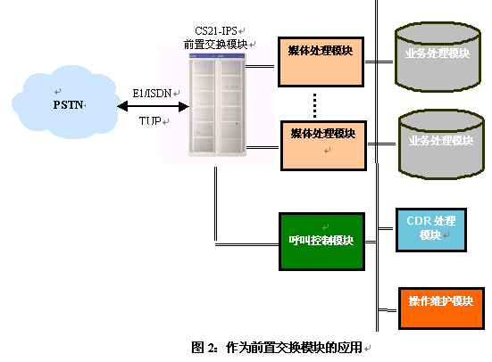 前置交換模塊:是一套可編程交換機(jī),提供E1和10/100M Ethernet接口,支持SS7、ISDN、TUP等信令 。具有大容量交換網(wǎng)絡(luò)、信號音、語音資源、會(huì)議電話功能。