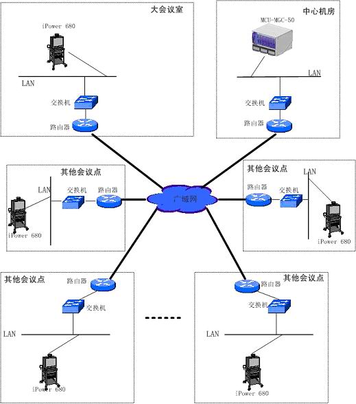 用戶將組建以多點控制單元MCU為中心,采用H.323 IP連接方式的H.323標(biāo)準(zhǔn)會議電視網(wǎng),端口速率為768kbps,多點控制單元要求的容量是可達到48個節(jié)點的同時接入。