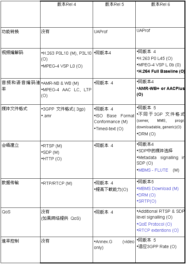 3GPP PSS(Packet Switched Streaming Service) 移動包交換流媒體服務規(guī)范從版本Rel 4到版本Rel
