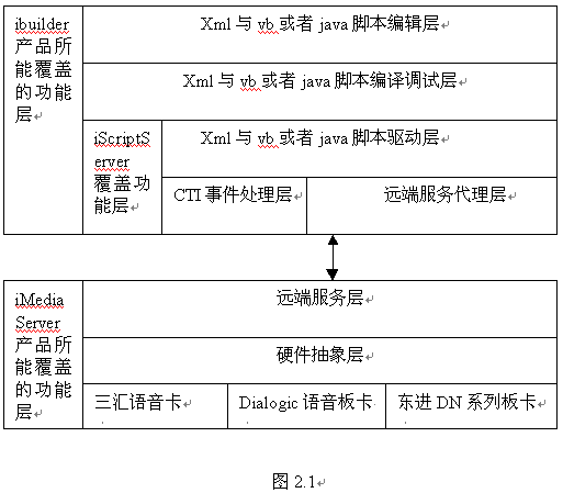如圖2.1所述,ibuilder產品覆蓋了腳本編輯、編譯調試、腳本驅動、遠端服務代理的功能,占據(jù)了IVR業(yè)務系統(tǒng)重要的一部分。
