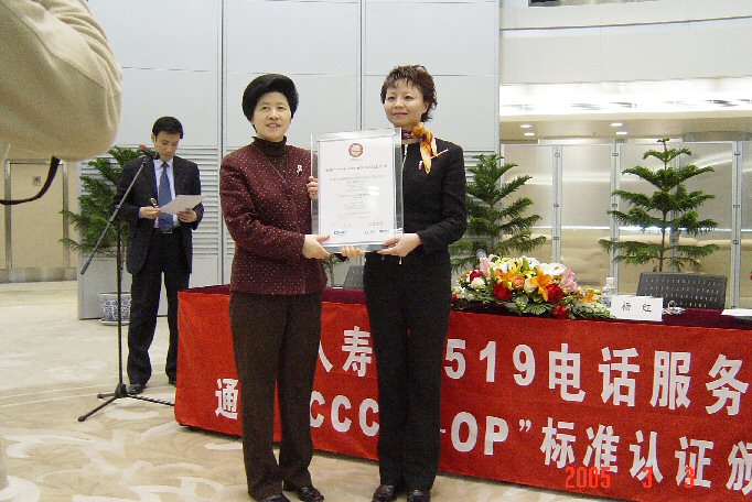 中國人壽保險(xiǎn)股份有限公司業(yè)務(wù)管理部副總經(jīng)理?xiàng)罴t在頒證儀式上發(fā)表了熱情洋溢的講話。她說,中國人壽保險(xiǎn)股份有限公司在中國的壽險(xiǎn)業(yè)中具有舉足輕重的地位、良好的業(yè)績表現(xiàn)和遍布全國的機(jī)構(gòu)網(wǎng)絡(luò),一貫秉承"用專業(yè)和真誠贏得感動(dòng)"的服務(wù)理念,力求通過"熱誠、規(guī)范、準(zhǔn)確、便捷"的服務(wù)回報(bào)廣大客戶多年以來的支持與信賴。中國人壽的呼叫中心自2001年建立以來,伴隨著公司的快速發(fā)展,在總分公司各級(jí)領(lǐng)導(dǎo)的關(guān)心、支持下,在各級(jí)中心管理人員和客服代表的共同努力下,在改善公司服務(wù)水平、提高客戶滿意度、促進(jìn)公司業(yè)務(wù)發(fā)展等方面正發(fā)揮著越來越重要的作用,呼叫中心自身也取得了長足的發(fā)展。