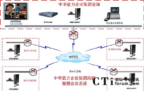 具體配置如下: 在中華意力企業(yè)集團配置RMX508C,所有會場配置HDX6000V及一臺領導桌面終端VVX1500