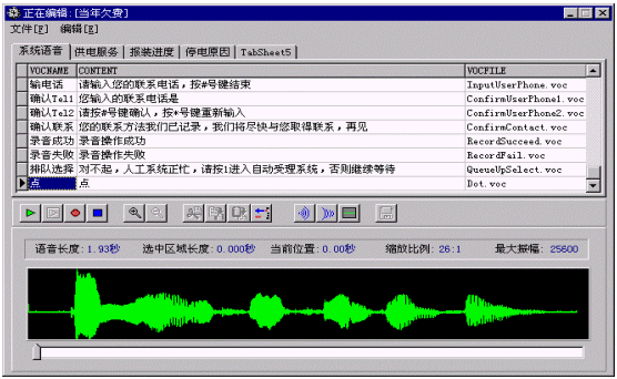 全程錄音監(jiān)聽(tīng)子系統(tǒng)主要對(duì)整個(gè)呼叫服務(wù)過(guò)程提供全程數(shù)字錄音。采用數(shù)字化錄音技術(shù),當(dāng)話(huà)務(wù)人員摘機(jī)時(shí),系統(tǒng)自動(dòng)錄音,語(yǔ)音文件采用VOC文件格式,ADPCM編碼格式,數(shù)據(jù)壓縮比高。話(huà)務(wù)班長(zhǎng)可隨時(shí)提取對(duì)話(huà)錄音,對(duì)服務(wù)質(zhì)量進(jìn)行評(píng)估和監(jiān)督。