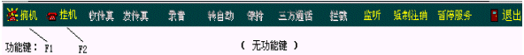 本系統(tǒng)座席端提供有座席電話(huà)卡連接了耳機(jī)和麥克風(fēng),直接用耳麥與用戶(hù)交談,并可操作電腦查閱資料或模擬電話(huà)功能。通訊控制功能區(qū)如下圖。黃色表示此功能可用,白色表示此功能不可用。