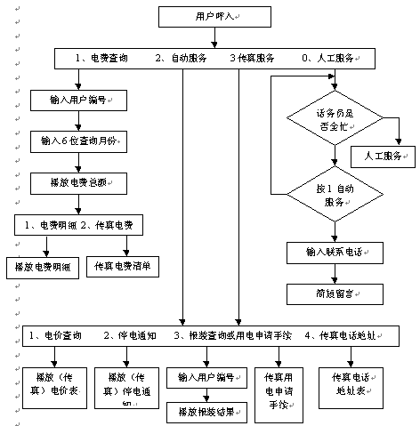 實(shí)現(xiàn)語音引導(dǎo)的用戶用電類型電價(jià)等電管信息傳真服務(wù) |