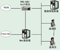 在處理來自Web的語音呼叫時,來電也必須與普通的語音來電一樣,經(jīng)過交換及排隊處理。將PBX、ACD、VoIP網(wǎng)關(guān)集成,使之既能處理來自Web的語音呼叫,也能處理來自PSTN的語音呼叫。