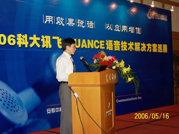 5月16日,在眾多客戶與合作伙伴的熱烈關(guān)注和積極參與下,“2006科大訊飛·NUANCE語音技術(shù)解決方案巡展”在首站北京正式拉開帷幕。