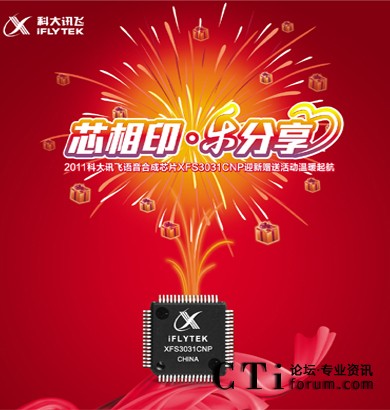 “芯” 相印,樂分享!為答謝并回饋廣大新老用戶,2011科大訊飛語音合成芯片XFS3031CNP迎新贈送活動12月28日起溫暖起航!