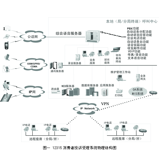 圖一是12315消費者投訴受理系統(tǒng)物理結(jié)構(gòu)圖: