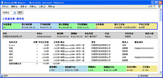 采用了新一代B/S架構(gòu)的SynleadCRM可動態(tài)提取XML結(jié)構(gòu)化應(yīng)用數(shù)據(jù),饋送給報表、圖表模板,向IE瀏覽器返回生成的DHTML報表、圖表頁面。報表和圖表模板里包含了一系列的分析模型。XML應(yīng)用數(shù)據(jù)不僅僅可以包括某工作界面當前動態(tài)查詢的主記錄集,也可以包含主記錄集關(guān)聯(lián)的子級數(shù)據(jù)項、孫級別數(shù)據(jù)項。例如,主結(jié)果集為生意機會記錄的時候,機會的聯(lián)系人為其關(guān)聯(lián)的子級數(shù)據(jù)項,聯(lián)系人的類別屬性為孫級別數(shù)據(jù)項。獲得的應(yīng)用數(shù)據(jù)資源范圍自動受當前操作者的權(quán)限約束。