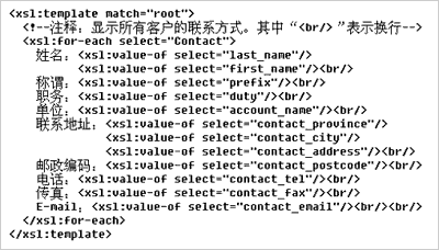 XSL采用結(jié)構(gòu)化描述。XSL遵循XML語(yǔ)法規(guī)范,結(jié)構(gòu)性、可讀性較強(qiáng)。經(jīng)過短時(shí)間學(xué)習(xí),渠道增值伙伴乃至用戶就可以掌握XSL描述要領(lǐng),改寫或新建XSL模板,例如定制客戶化的報(bào)表。
