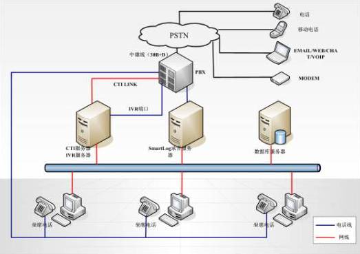 呼叫中心總體拓補(bǔ)圖如下: