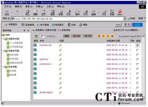 以下為AllyTalk統(tǒng)一消息傳真服務(wù)接收傳真的顯示界面: