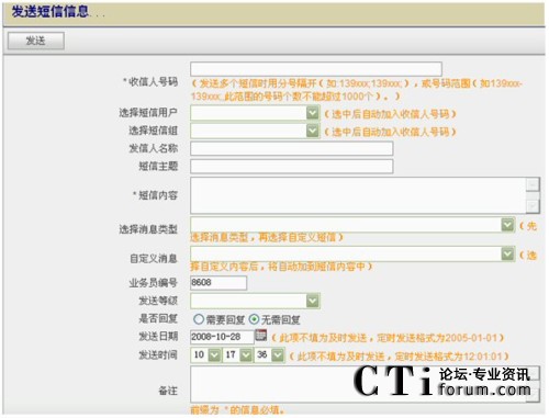 - 通過個(gè)人的Web方式的客戶端給系統(tǒng)預(yù)先設(shè)置好的個(gè)人或?qū)懭雽Ψ绞謾C(jī)號碼發(fā)送短信;