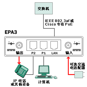 EPA3 是緊湊型適配器,允許 IP 電話或其他附件通過(guò)現(xiàn)有的局域網(wǎng)布線接收數(shù)據(jù)并為其供電,而無(wú)需修改現(xiàn)有的以太網(wǎng)基礎(chǔ)結(jié)構(gòu)。EPA3 集成了一個(gè) 3 端口交換機(jī),以便可以連接一個(gè)帶電源的設(shè)備以及另外一個(gè)設(shè)備。