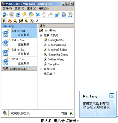系統(tǒng)提供了靈活的電話會議方式,例如:總經(jīng)理發(fā)起一個電話會議,公司的IT主管、客戶經(jīng)理參加,當(dāng)聊到IT方面時,需要具體的負(fù)責(zé)人來解答一些問題,IT主管可以用MXIE或話機將他加入到會議中來,回答完畢后,他可以自己掛機退出會議,IT主管也可以將他退請出會議,而會議不會中斷。
