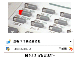 當(dāng)有新消息到達(dá)時,話機上的“Msg”燈會閃亮,MXIE軟件也會有相應(yīng)提示。