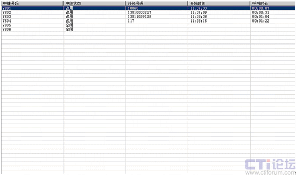 如圖3所示,管理員能得到中繼來電的明細(xì)信息,來電號碼,來電時長,都有詳細(xì)數(shù)據(jù)。