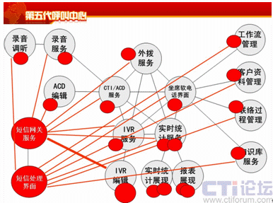 需要保存記錄的,需要做質(zhì)量管理的,大家需要把這個(gè)東西保存起來(lái),以便于考核座席,這時(shí)候電話錄音的服務(wù)需要改動(dòng),座席質(zhì)量管理的界面需要改動(dòng),因?yàn)橐郧肮芾斫缑媸锹?tīng)錄音的,現(xiàn)在是需要看文本了。接著客戶資料管理也是需要嗎?當(dāng)然需要了,來(lái)一個(gè)短信以后,盡量把客戶資料能夠屏幕彈出,降低我們的服務(wù)時(shí)間,需要改進(jìn)。知識(shí)庫(kù)需要改動(dòng)嗎?需要,因?yàn)槲野l(fā)短信的時(shí)候,不可能每個(gè)字都敲進(jìn)去,需要從知識(shí)庫(kù)把這個(gè)信息拽出來(lái),這時(shí)候需要知識(shí)庫(kù)的服務(wù)。工作流,通過(guò)短信也要進(jìn)行一些業(yè)務(wù)的處理。聯(lián)絡(luò)過(guò)程也需要管理。這時(shí)候戰(zhàn)略出來(lái)了,經(jīng)營(yíng)者說(shuō)了,我現(xiàn)在通過(guò)短信要做營(yíng)銷了,我要外撥了,和外撥服務(wù)連接出來(lái),還有經(jīng)營(yíng)者的一些戰(zhàn)略,比如說(shuō)對(duì)于一些比較高的客戶,優(yōu)先分配,降低等待時(shí)長(zhǎng)。那么這個(gè)戰(zhàn)略還包括這些產(chǎn)品生命周期的管理,需要不同的服務(wù)方式,一樣也要通過(guò)編輯,策略可以自行調(diào)整。