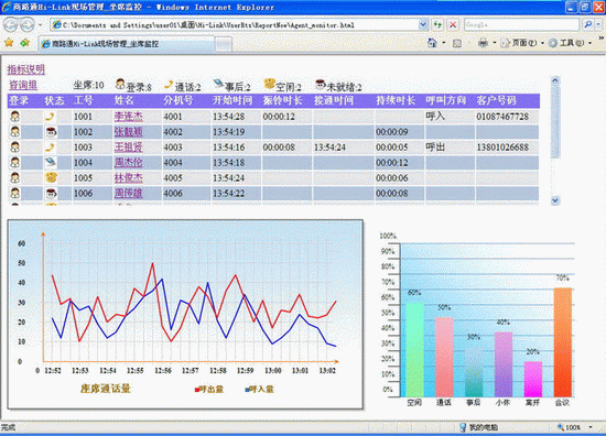 科學(xué)管理思想強(qiáng)調(diào)控制生產(chǎn)及服務(wù)過程的事前計(jì)劃,事中控制和事后分析,以期將整個(gè)管理流程形成閉環(huán)。而呼叫中心的管理從第一代至第四代都偏重于事后分析及事前計(jì)劃,雖然也有事中的通話監(jiān)聽、錄音的事后分析,但是從及時(shí)解決業(yè)務(wù)中的例外案件顯得力不從心。呼叫中心現(xiàn)場運(yùn)營管理中,對管理的實(shí)時(shí)性要求很高。作為各級呼叫中心管理人員,總是希望看到自己關(guān)心的運(yùn)營指標(biāo),并給員工以及時(shí)的指導(dǎo)及糾偏。目前市面的呼叫中心在實(shí)時(shí)監(jiān)控方面基本上都是固定格式、不可調(diào)整的,對于日益繁忙的呼叫中心現(xiàn)場來說已經(jīng)不能滿足需要。運(yùn)營管理者需要的是內(nèi)容豐富,可靈活調(diào)整的實(shí)時(shí)監(jiān)控軟件。而這就呼喚更先進(jìn)的技術(shù)來為事中控制做支撐。SynRoute AgentMap為呼叫中心現(xiàn)場管理事中控制提供了豐富多彩的監(jiān)督和控制工具。