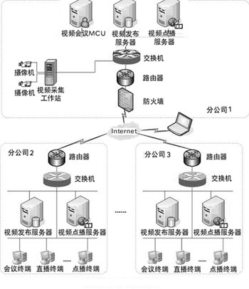 旺城國際各下屬單位都已于1999年建設好公司內部局域網(wǎng),并且都有10M公網(wǎng)出口。旺城國際希望借助視頻會議幫助協(xié)調解決日前較為突出的營運問題,同時能將會議現(xiàn)場的視頻直播到公網(wǎng)上,供所有單位職工(需有權限)觀看多方開會的現(xiàn)場,并錄制成MPEG-4格式的文件,放置在公司內部局域網(wǎng)上,作為會議記錄存檔,供所有員工點播。具體要求如下: