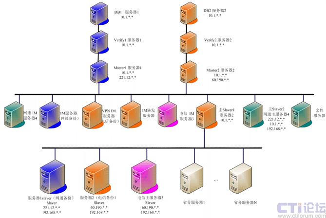 系統(tǒng)平臺(tái)采用集群化部署,實(shí)現(xiàn)跨網(wǎng)絡(luò)分布式,從而在應(yīng)用中實(shí)現(xiàn)南北網(wǎng)通電信的互聯(lián)互通,以及專網(wǎng)用戶的無(wú)障礙接入,實(shí)現(xiàn)方式如下圖所示: