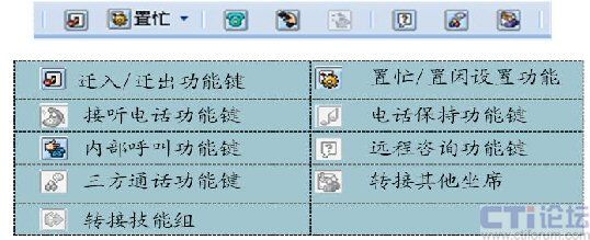基于業(yè)務(wù)支撐平臺的JTAPI開發(fā)包所開發(fā)的Applet程序,實現(xiàn)座席員所需要的話務(wù)功能,可以和頁面進(jìn)行交互;軟電話條如下: