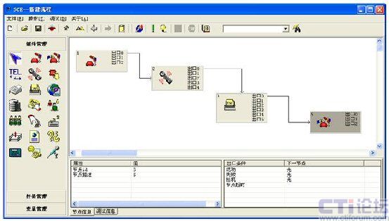 簽入、簽出、置閑、置忙、應(yīng)答、掛機(jī)、保持/取回、咨詢/取消咨詢、兩路切換、轉(zhuǎn)接、三方會議、轉(zhuǎn)技能組、外呼等;豐富的業(yè)務(wù)系統(tǒng)功能包括:工單管理、知識庫、客戶管理、質(zhì)檢管理、外撥管理、業(yè)務(wù)統(tǒng)計報表、公告板、郵件管理、系統(tǒng)管理、前臺業(yè)務(wù)(坐席)功能、班長功能、數(shù)據(jù)同步、全程錄音、業(yè)務(wù)處理等,這些功能不作詳細(xì)介紹。IVR流程也是采用非常先進(jìn)的圖形化流程編輯器,通過簡單的拖、拉圖標(biāo)方式即可實現(xiàn)對IVR流程的定制: