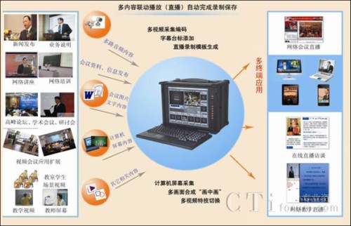 CTI論壇(ctiforum)6月8日消息(記者 潘婷婷):隨著視訊技術(shù)的不斷發(fā)展,市場(chǎng)上出現(xiàn)了越來(lái)越多的應(yīng)用終端,除了傳統(tǒng)的PC外,IPAD、IPHO等新興移動(dòng)終端紛紛進(jìn)入市場(chǎng),多終端應(yīng)用的網(wǎng)絡(luò)視音頻系統(tǒng)越來(lái)越被用戶(hù)所關(guān)注。傳統(tǒng)的直播錄播系統(tǒng)在很大的程度上已不能滿(mǎn)足部分用戶(hù)的需求,清晰、流暢、支持多終端應(yīng)用的網(wǎng)絡(luò)直播錄播系統(tǒng)已經(jīng)成為網(wǎng)絡(luò)視頻應(yīng)用的亮點(diǎn)和優(yōu)勢(shì)。北京經(jīng)緯中天信息技術(shù)有限公司作為國(guó)內(nèi)一流的專(zhuān)業(yè)網(wǎng)絡(luò)視音頻應(yīng)用平臺(tái)開(kāi)發(fā)商和服務(wù)商,不僅僅專(zhuān)注于行業(yè)技術(shù)的研究,同時(shí)更加關(guān)注市場(chǎng)的需求,實(shí)時(shí)地推出了“支持多終端應(yīng)用的富媒體直播錄播系統(tǒng)”,可很好地滿(mǎn)足用戶(hù)多種網(wǎng)絡(luò)視頻應(yīng)用。