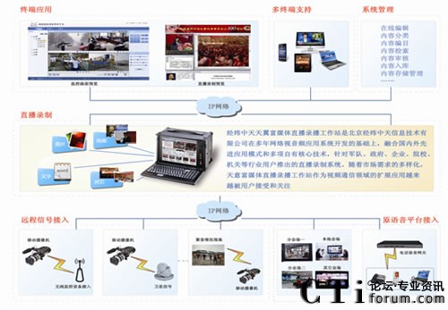 CTI論壇(ctiforum)6月29日消息(記者 楊佳林):近日,“2011年第二屆中國國際指揮調(diào)度技術(shù)與設(shè)備展覽會(huì)”在中國國際展覽中心隆重召開。北京經(jīng)緯中天信息技術(shù)有限公司攜“天翼富媒體直播錄播工作站及統(tǒng)一網(wǎng)絡(luò)視頻監(jiān)控管理平臺(tái)”參展。作為網(wǎng)絡(luò)視音頻應(yīng)用領(lǐng)域的佼佼者,經(jīng)緯中天參與此次安防領(lǐng)域的展會(huì)充分說明了公司業(yè)務(wù)的全面擴(kuò)展,其推出的“統(tǒng)一網(wǎng)絡(luò)視頻監(jiān)控管理平臺(tái)”及富媒體工作站在視頻通信領(lǐng)域的擴(kuò)展應(yīng)用理念受到了各界參會(huì)人士的高度關(guān)注和一致好評(píng)。