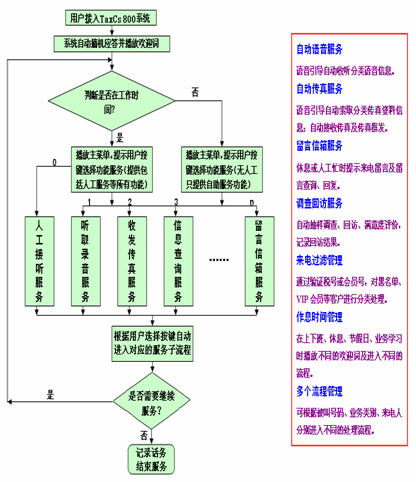 - 提供自動(dòng)聽取錄音信息、索取傳真文件、發(fā)送或接收傳真、語音留言等服務(wù);