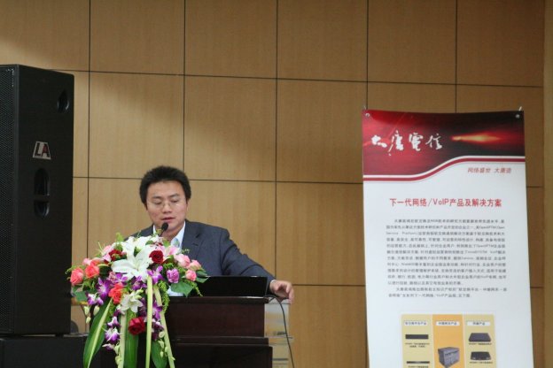 大唐高鴻寬帶產(chǎn)品事業(yè)部總經(jīng)理張新中做了題為“打破呼叫中心壁壘 VoIP引領(lǐng)融合通信未來”主題發(fā)言,他從通訊技術(shù)的歷史發(fā)展講起,并介紹了大唐高鴻公司的發(fā)展歷程。從公司的定位,介紹到了VoIP技術(shù)在呼叫中心中的作用。并且強調(diào)說:“大唐高鴻是主流VoIP產(chǎn)品、業(yè)務和解決方案供應商,同時也是新的商業(yè)模型的締造者和執(zhí)行者。我們看到了呼叫中心產(chǎn)業(yè)在中國的蓬勃發(fā)展,我們希望與廣大的呼叫中心行業(yè)廠商,從業(yè)人員緊密合作,推動新技術(shù)在呼叫中心行業(yè)中的應用。大唐高鴻將與渠道合作伙伴在市場、產(chǎn)品、服務等各方面協(xié)調(diào)同步,高效合作,和諧發(fā)展!