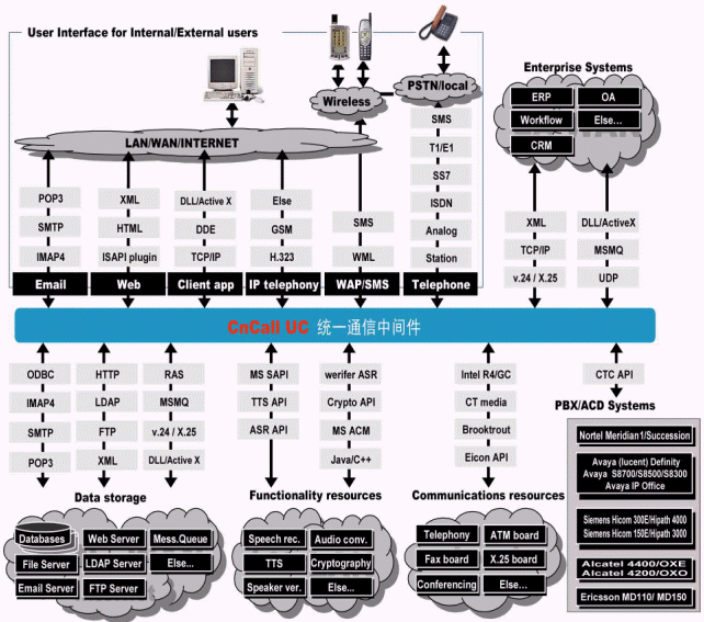 、SMTP、IMAP4等E-mail處理模塊,豐富的數(shù)據(jù)通信和應用集成模塊,可以保證統(tǒng)一通信平臺與計算機應用系統(tǒng)的緊密集成。