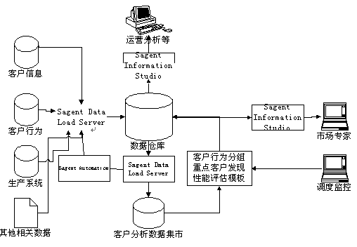 易虹eCRM解決方案,采用Sagent Real Time e-Business Solution作為數(shù)據(jù)倉庫建設(shè)平臺。Sagent Solution提供了數(shù)據(jù)倉庫建設(shè)、數(shù)據(jù)分析和數(shù)據(jù)倉庫管理的全套的工具。利用這些工具,用戶可以快速地實(shí)現(xiàn)數(shù)據(jù)倉庫和客戶分析系統(tǒng)。