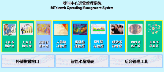 Teleweb-OMS運(yùn)營管理系統(tǒng)共有11個(gè)模塊,涵蓋了動(dòng)態(tài)質(zhì)檢管理、培訓(xùn)管理、考勤管理、人力資源管理、話務(wù)預(yù)測與自動(dòng)排班、KPI管理、績效考核、部門間的需求單管理等各個(gè)環(huán)節(jié),并且提供了外部數(shù)據(jù)抽取功能和報(bào)表自動(dòng)生成功能。