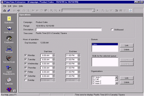 WFMS允許管理者通過設(shè)定技能參數(shù)和可能的工作量來創(chuàng)建和假設(shè)出不同的排班表。把上面的設(shè)定和特殊日期的工作量聯(lián)系起來,加以WFMS的附加工具,管理者將迅速的對建立的排班進(jìn)行評估。呼叫組可以根據(jù)預(yù)測的工作量進(jìn)行調(diào)整,員工也可能被調(diào)到一個特定的呼叫組回答特定的問題。所以兼職員工輔以全職員工,這是最好的組合方式,可以實(shí)現(xiàn)預(yù)測出的每一個排班方式。而且WFMS會不斷地從ACD中提取數(shù)據(jù),不斷地預(yù)測,找到最完美的平衡點(diǎn)。這種方式將使技能組的設(shè)置和人員排班的工作更加簡單,做的更好。