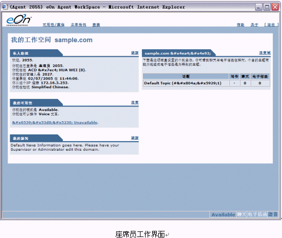 用戶在第一次登陸時(shí),在IE的地址欄中正確鍵入WorkSpace的IP地址便可以進(jìn)入WorkSpace的歡迎頁(yè)面。在該頁(yè)面上顯示有座席員工作空間(Agent