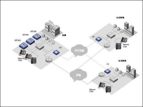 華為三康的XE7000IP語音解決方案是為企業(yè)提供融合的通信解決方案,在同一網(wǎng)絡(luò)上融合語音、數(shù)據(jù)和視頻信息,以滿足其日益增長的企業(yè)通信的要求從而解決了現(xiàn)代企業(yè)面對(duì)的傳統(tǒng)PBX語音服務(wù)和IP網(wǎng)絡(luò)數(shù)據(jù)服務(wù)分離問題。華為三康的XE7000IP語音解決方案構(gòu)建在企業(yè)現(xiàn)有IP數(shù)據(jù)網(wǎng)絡(luò)之上,以集中式管理方式提供企業(yè)全網(wǎng)范圍內(nèi)的呼叫控制以及管理,業(yè)務(wù)控制和信令分離使得用戶在管理上更加簡單透明,極大的節(jié)省了日常維護(hù)費(fèi)用和降低了維護(hù)難度。并使得客戶可以在任意地方實(shí)現(xiàn)IP語音數(shù)據(jù)接入,使得企業(yè)分布式辦公的不再因?yàn)槲锢砜臻g隔離而無法實(shí)現(xiàn)。