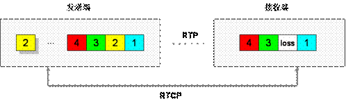 利用實(shí)時(shí)傳輸控制協(xié)議RTCP反饋信息提供丟包重發(fā)功能,當(dāng)接收端檢測(cè)到有丟包時(shí),判定對(duì)端是否來(lái)得及進(jìn)行重發(fā),可以的話通過(guò)RTCP控制信道向發(fā)送端請(qǐng)求重發(fā)。