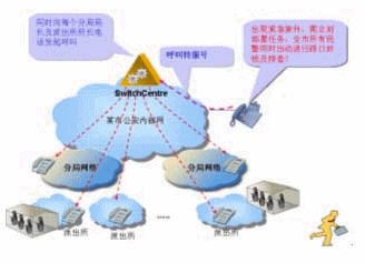 在公安系統(tǒng)中,有時(shí)候出現(xiàn)緊急案件,需立刻部署任務(wù),例如要求全市所有民警同時(shí)出動(dòng)進(jìn)行路口封鎖及排查!如果一個(gè)一個(gè)打電話(huà)通知將會(huì)很麻煩,如果有電話(huà)廣播功能將是很方便的,可以同時(shí)接通很多電話(huà),將命令廣播下去。華為3Com公司V2oIP系統(tǒng)在強(qiáng)大的GK支持下,只要事先定義了特服號(hào)對(duì)應(yīng)的電話(huà)號(hào)碼群組,撥通特服號(hào)就能實(shí)現(xiàn)電話(huà)廣播。