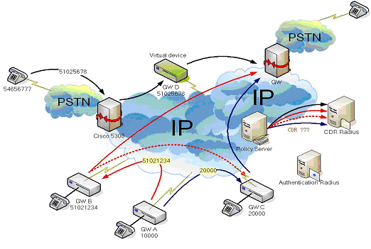 向VoIP終端用戶提供PSTN網(wǎng)絡(luò)的號(hào)碼 |