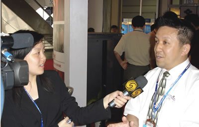 ....同時(shí),Polylink的參展和在通訊界的影響力吸引了各知名媒體的目光。圖為Polylink總裁Roger